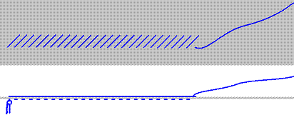~Zigzag: Unlike the Straight or Chain stitches, the Zigzag stitch can stretch. Like the Chain stitch, this stitch travels backwards underneath the fabric, but unlike the Chain it does not need to come up through the threads of the previous stitch. So on top you make a long stitch to the diagonal, an then underneath you go a tiny bit backwards. Rinse, repeat. Why does it stretch? Because as you lengthen the fabric, the Zigzag can get narrower. This is the stitch you will use to sew in an elastic waist band. See the elastic waist band page for more details.